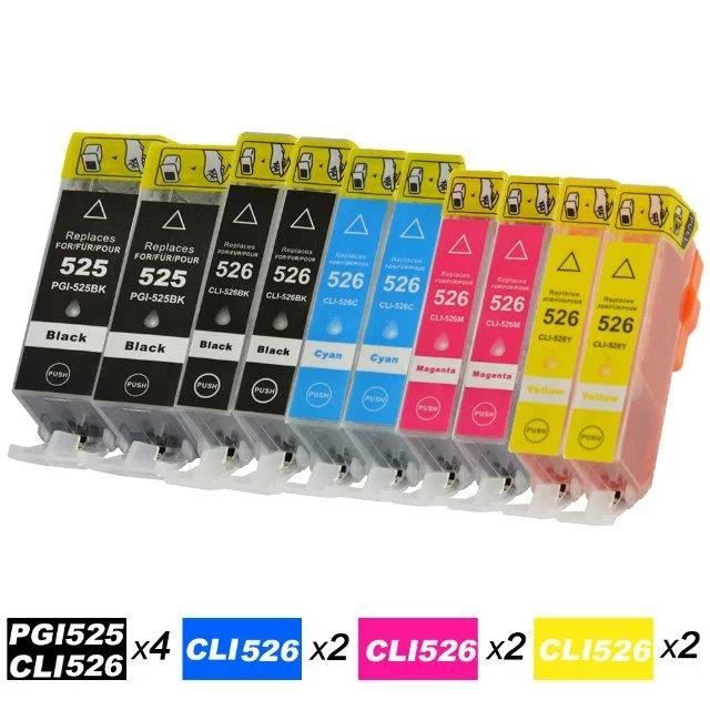 Kit of 10 Compatible Cartridges for Canon PGI 525 - CLI 526 for Canon Pixma IP4850- MG5250- MG5150 -2BK2B2C2M2Y
