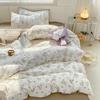 Korean Style Bedding Set Red Heart Twin Queen Size Duvet Cover Flat Sheet Pillowcase Bed Linen Kids Adult Fashion Home Textile