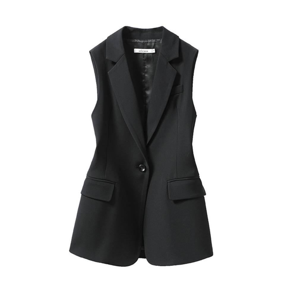 Women's Lapel Collar Vest Coat All-Matched Single Breasted Sleeveless Classic Solid Color Chic Vintage Office Lady Jacket