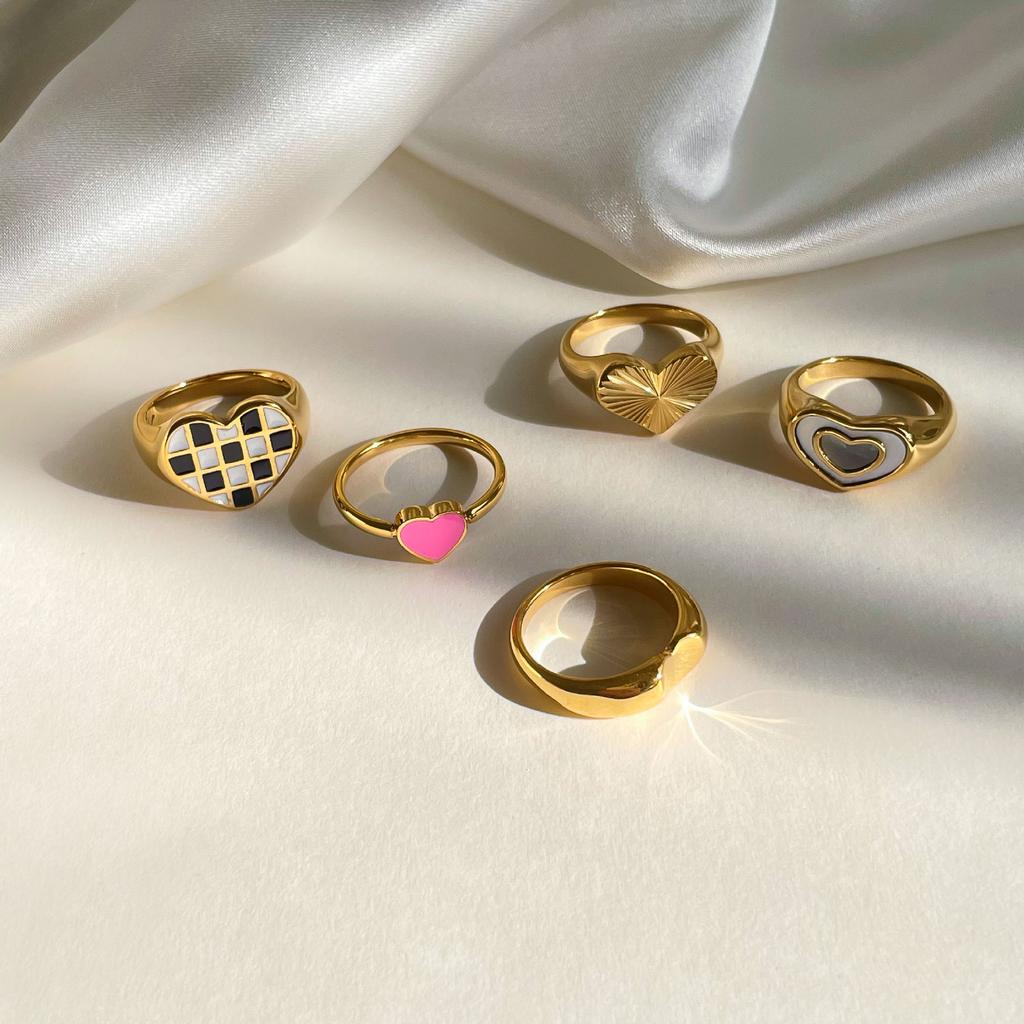 Fashion Vintage Bohemia Pink Enamel Love Heart Ring Stainless Steel Cute Finger Rings For Women Girl's Rock Jewelry Gift For Gir
