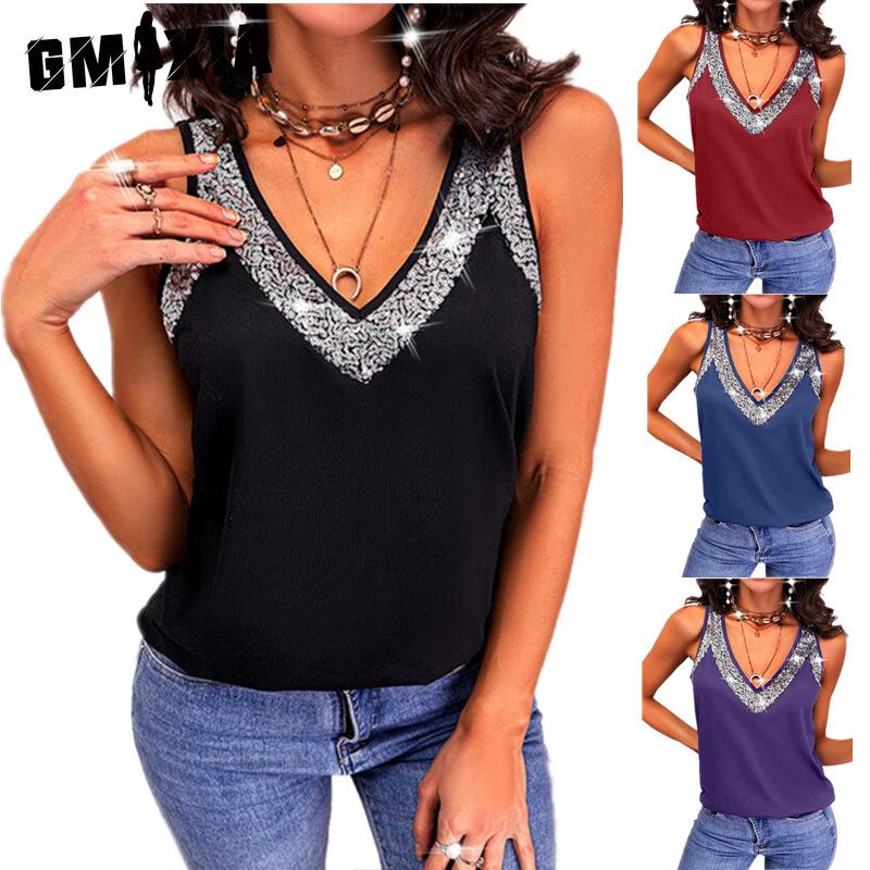 GMXIA Summer Women's Solid Color Sequined Sleeveless Vest T-shirt Top