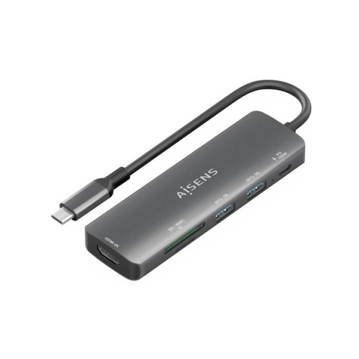 Docking USB Tipo-C Aisens ASUC-5P011-GR- 1xHDMI- 2xUSB- 1xUSB Tipo-C PD- 1xLector Tarjetas- Gris