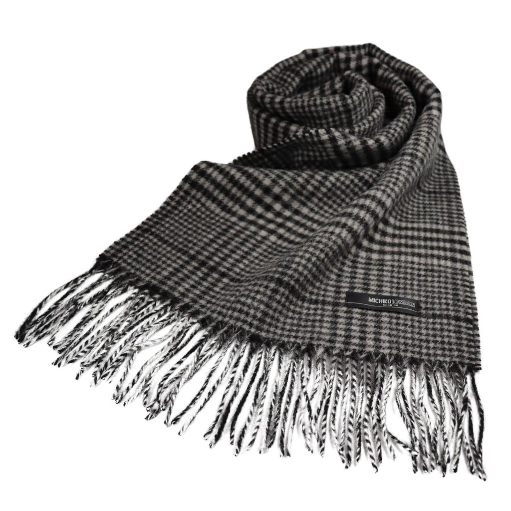 MICHIKO LONDON INNER MONGOLIA Wool 168cm X Glen Black and White Scarf, Gift, Present, Size Approx. 31cm, Approx. 8cm, MKM-003, Plaid,