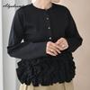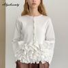 Elegant Fashion Autumn Winter Women Solid Knitting Cardigan White Black Pink Ruffles Patchwork Office Lady Knitted Sweater Sweet Ladies' Warm Coat