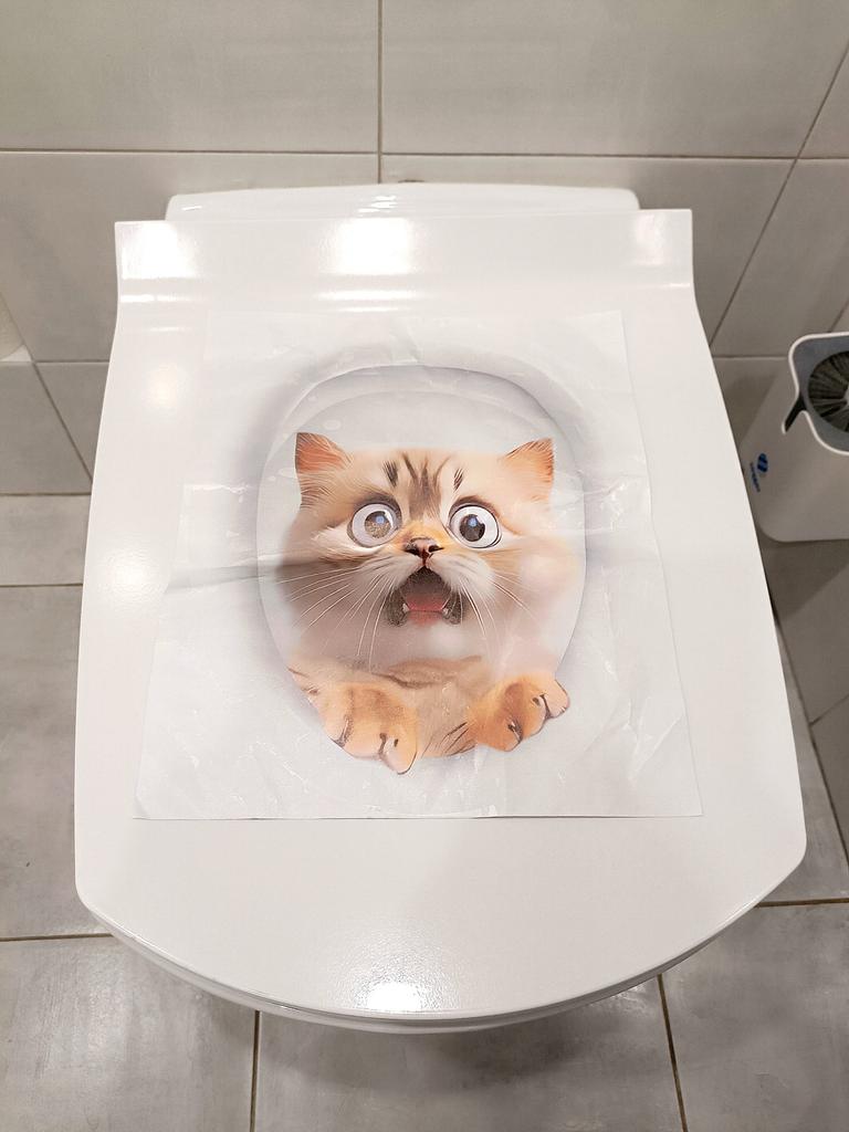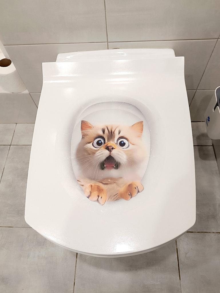 Funny bright sticker for the toilet seat There are several types to choose from Glued easily Looks interesting Recommend 👍