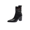 Fashion NEW Autumn Women Boots Pointed Toe Chunky Heel Boots Split Leather Shoes for Women Short Modern Boots Winter Belt Buckle Boots