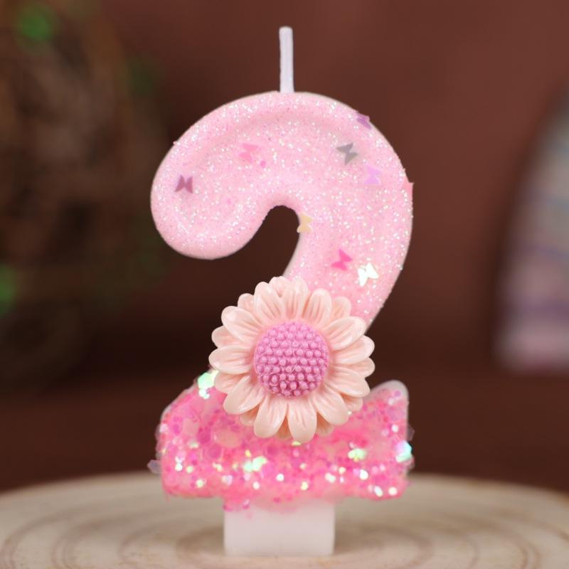 Creative Pink Flowers Birthday Numbers Candles Party Supplies Cake Decoration Sunflowers