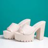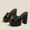 Liyke Punk Style Black White Chunky High Heels Slippers For Women Non -Slip Thick Bottom Platform Sandals Ladies Summer Shoes