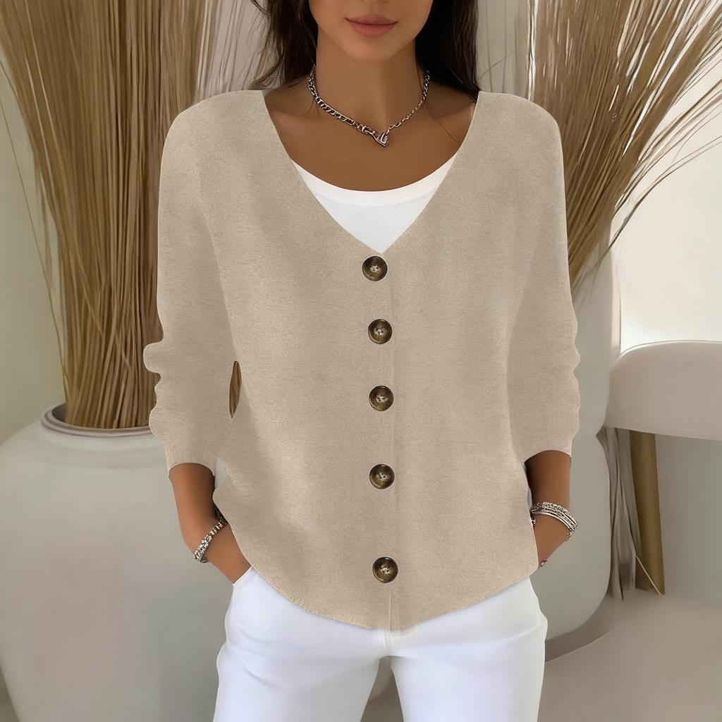Women's Fashionable Solid Color Long Sleeved Button V-neck Casual Commuting Knitted Jacket