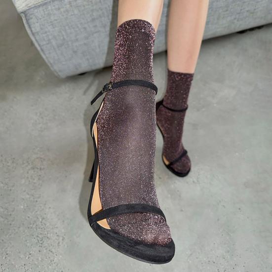 Women's Sheer Glitter Crew Socks Metallic Shimmer Shiny Sparkly Socks Breathable Thin Ankle Socks for Ladies Girls