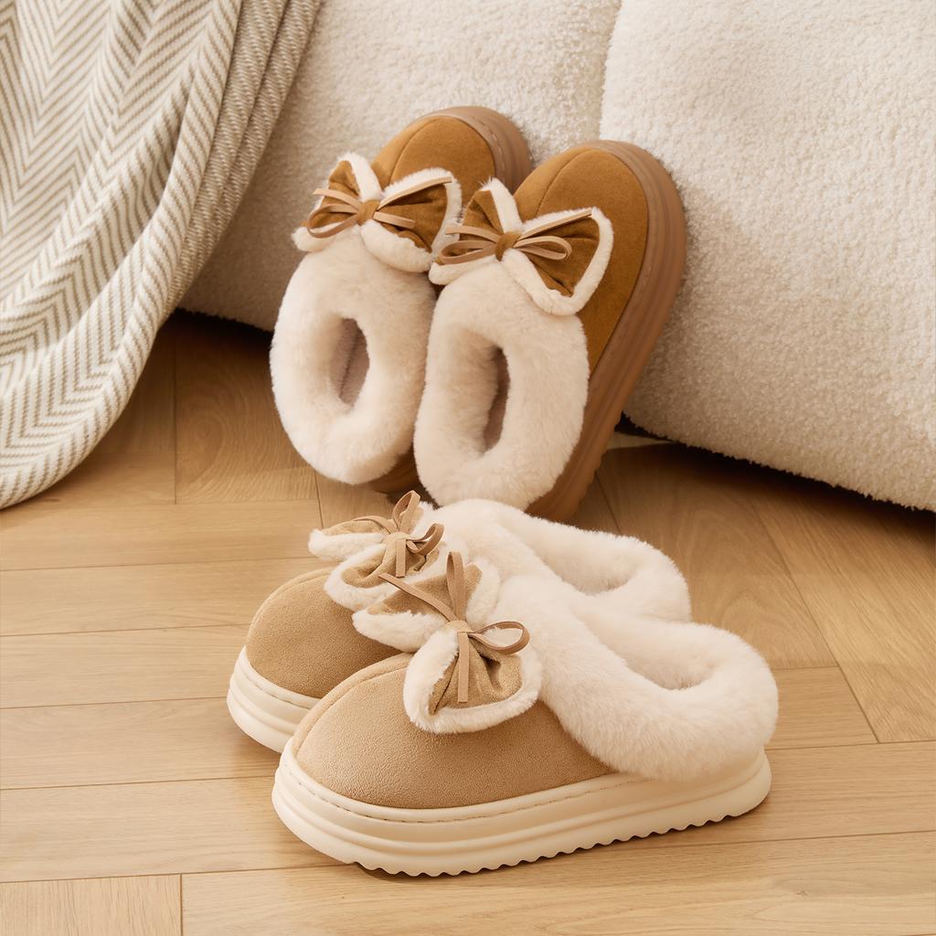 Winter Women Cotton Slippers Plush Warm Thick Bottom Slides Breathable Soft Non-slip Slippers