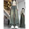 Retro High-waisted Wide-leg Jeans Women's Autumn New Loose and Thin Straight Floor-mopping Trousers