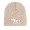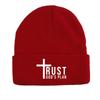 TRUST GOD'S PLAN" Winter Knit Hat Beanie, Crucifix Skullies Beanies Windproof Cozy Unisex Pompom Beanies Knitted Cap Beanie