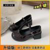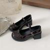Thick Heel Retro Mary Jane Shoes Women's 2025 Autumn New Bow Japanese Jk Versatile Brown One-word Buckle Small Leather Shoes