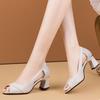 Fish Mouth Sandals High Heels Women's 2025 New Summer Sequins Fashion Women's Thick Heel Versatile Hollow Women's Shoes Large Size