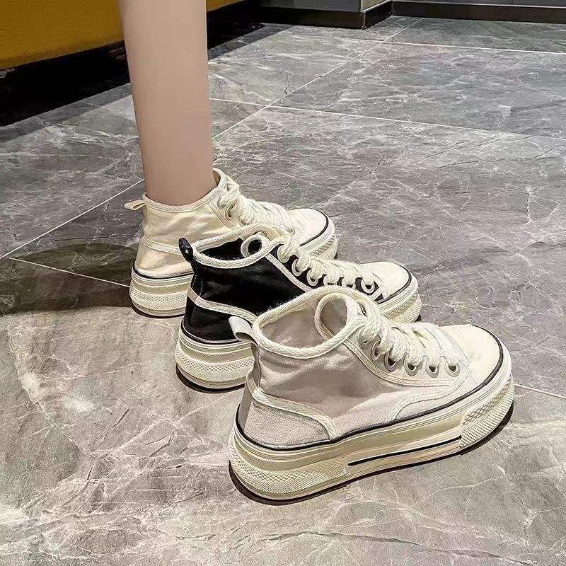 Shoes Women's 2025 Spring and Autumn Thin High-top Little White Shoes Platform Canvas Shoes Women's Ins Niche Versatile Casual