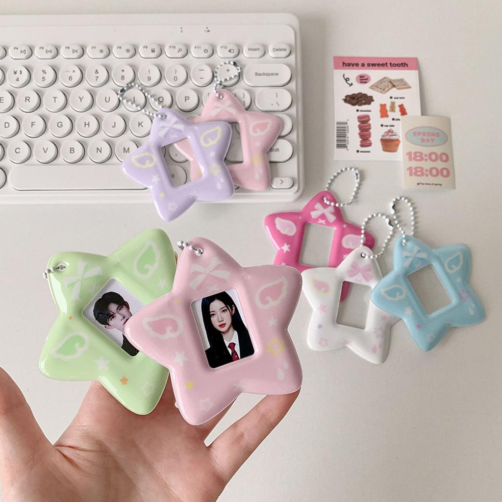 1 Inch Photo Holder Portable Photocard Holder with Keychain Star Shape Photo Card Sleeve for Students Office Workers