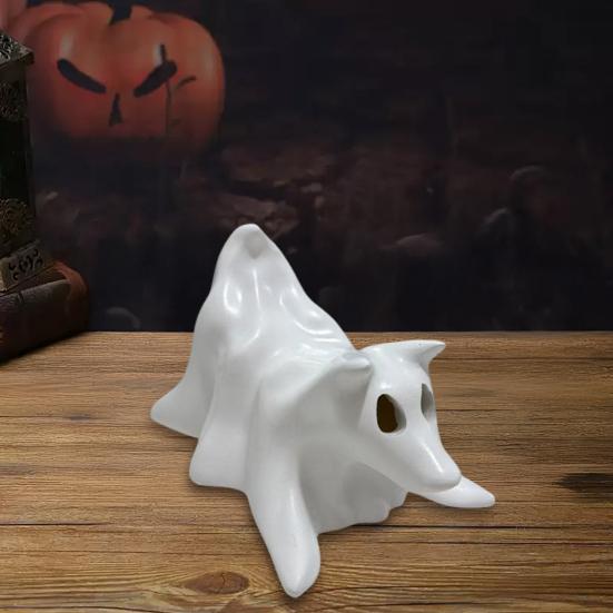 Festive Halloween Accent: Elevate your interior decor with whimsical colors and playful vibes by incorporating these ghost dog figurines into your seasonal display, creating a fun and inviting ambiance.