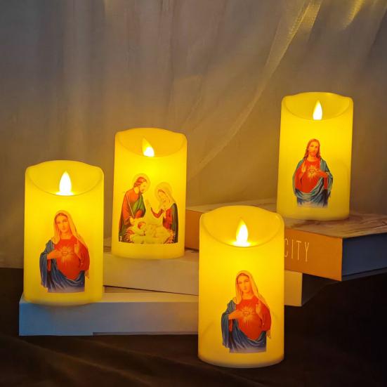 LED Christmas Candle Lights Flameless Flickering Prayer Lamp Religious Figure Design Lights