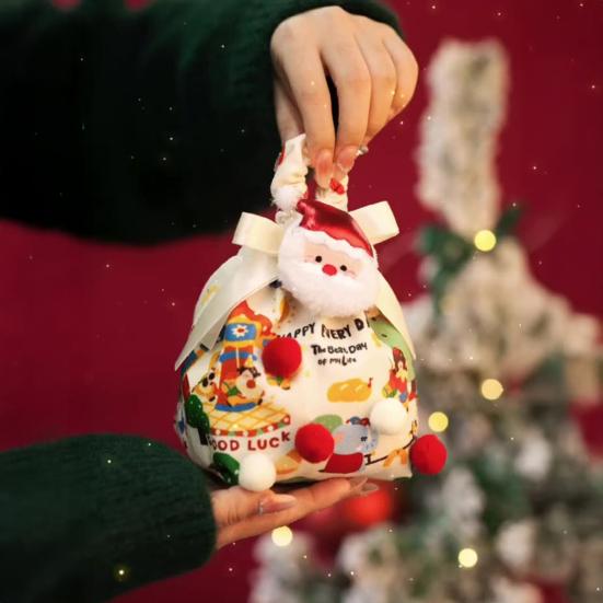 Christmas Drawstring Gift Bags 3D Fabric Wrapping Gift Bags Reusable Xmas Candy Bags with Handle