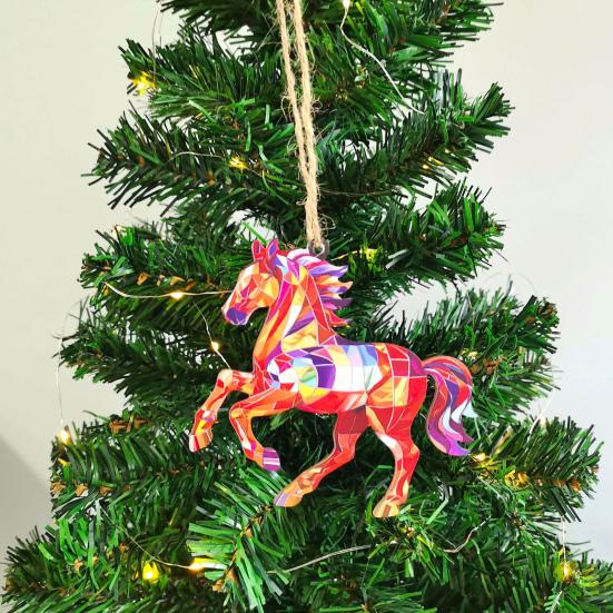 Christmas Horse Ornaments 2D Acrylic Colorful Horse Ornament for Christmas Tree Equestrian Gifts for Women