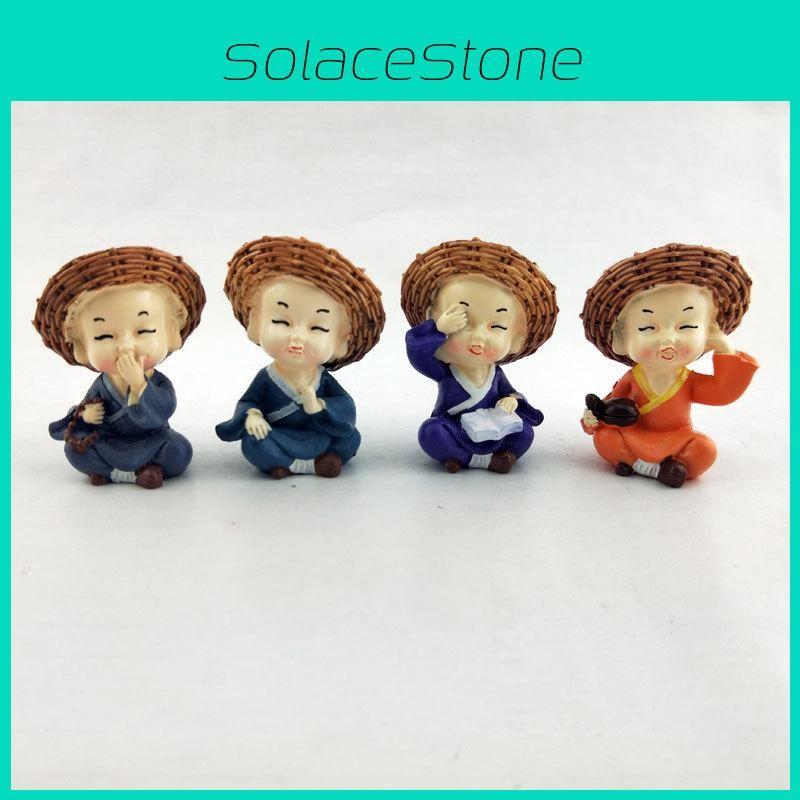 4pcs Cute Straw Hat Little Monk Mini Ornament Set For Garden And Decor Car