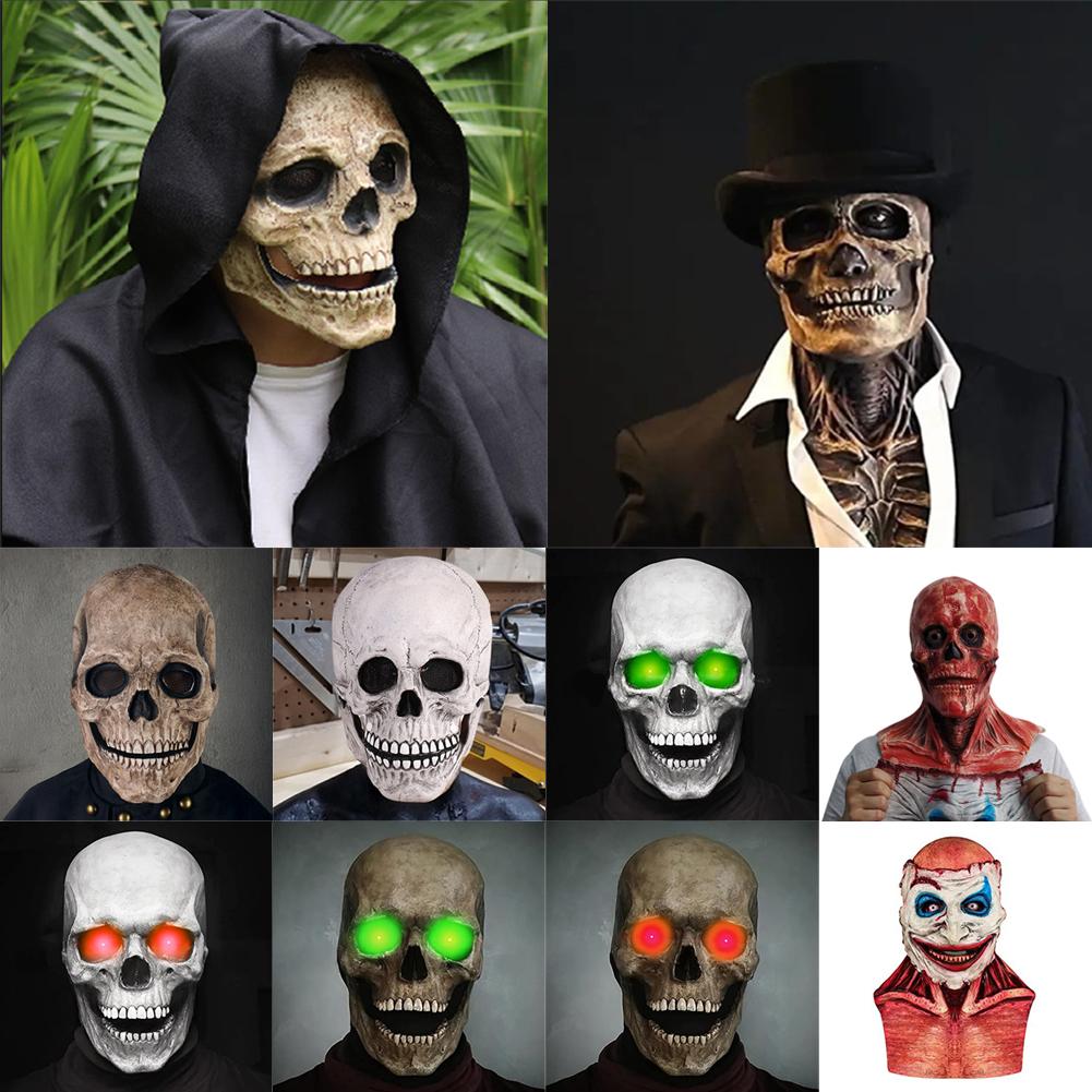 Halloween Animated Talking Mask Glowing Green Eyes Skull Mask Animated Moving Jaw Skull Realistic Halloween Prop Full Head Halloween Skull Mask