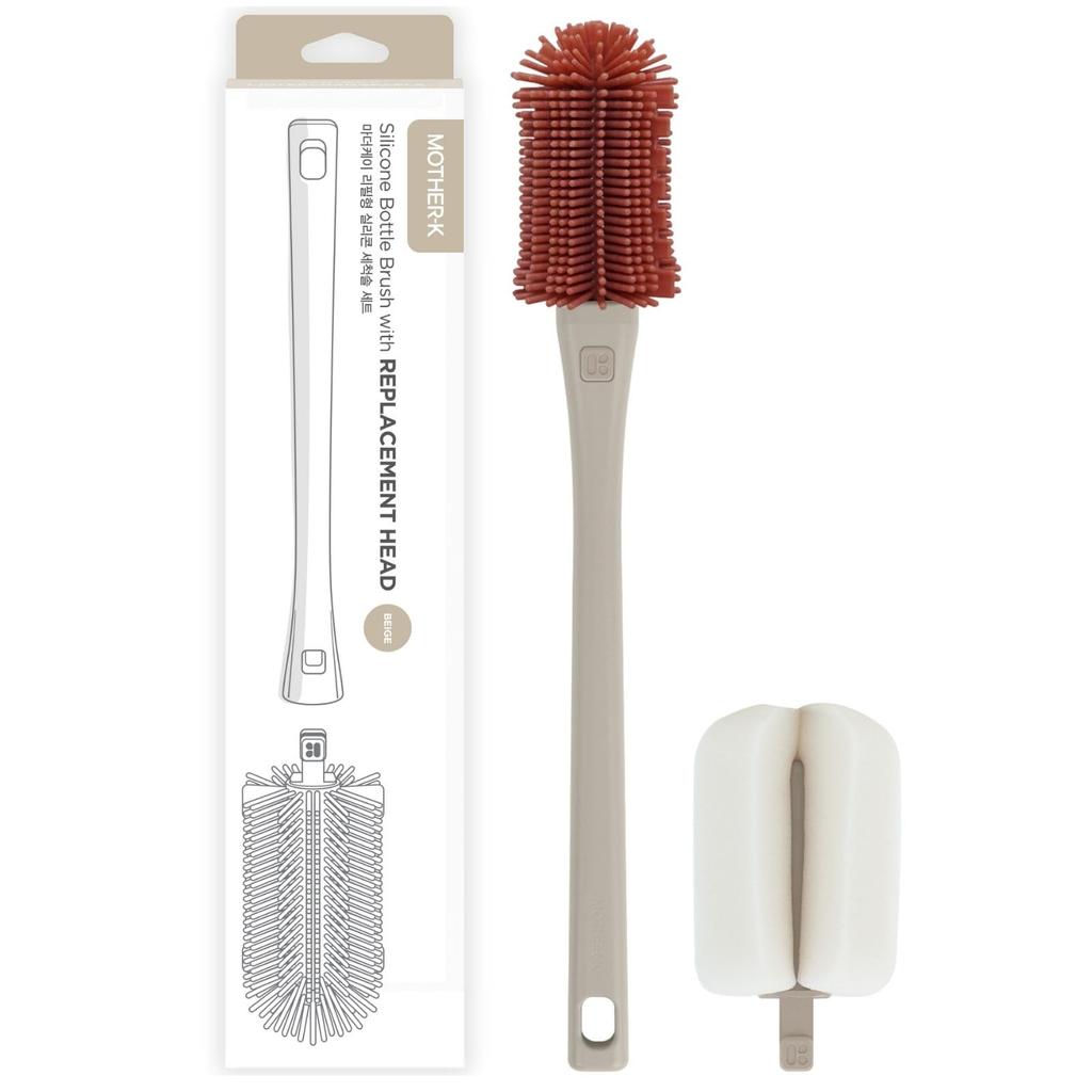 Baby Bottle Silicone Bottle Brush Set Brush 1 Silicone 1 Sponge Approximately 29 X Beige 111483 [Authentic] MOTHER-K Brush, Sponge, (1 Head, Head,