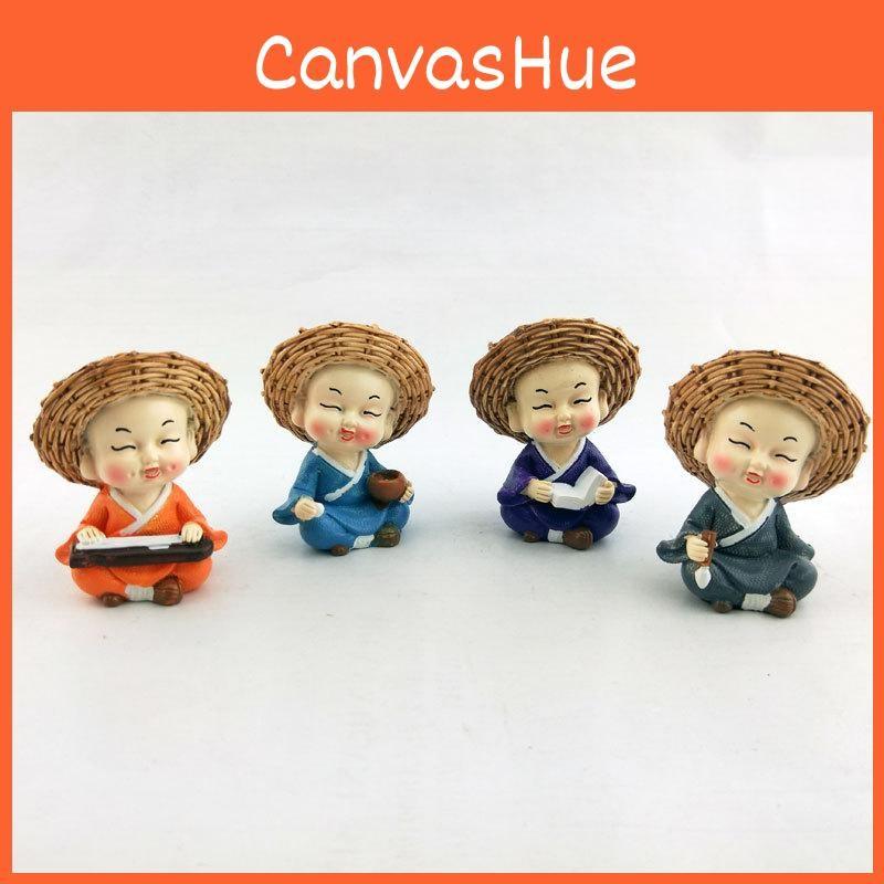 4pcs Cute Straw Hat Little Monk Mini Ornament Set For Garden And Decor Car