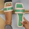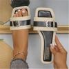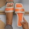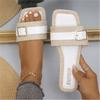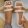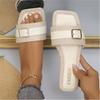 European and American Large-size Metal Buckle Flat Bottom Square Head One-word Slippers, Wearing Versatile Open-toed Dongmen Retro Cool Slippers Women