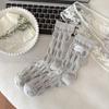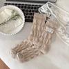Lace Fabric Label Pleated Bubble Mid-calf Socks, Women's Three-dimensional Trendy Socks, College Style Pile Socks