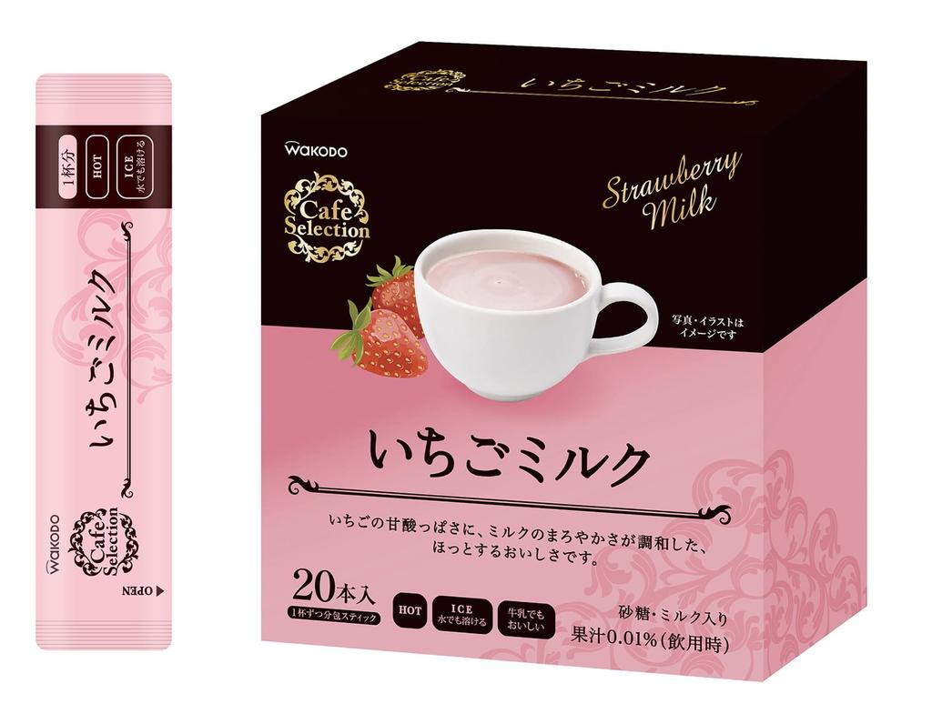 Wakodo Cafe Selection Strawberry Milk Powder, 17g X 20 Sticks (1 Box), Stick Packaging