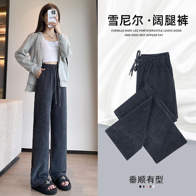 Chenier Wide-leg Pants Women's Pants Autumn and Winter New Casual Drape Black Velvet Straight Corduroy Pants