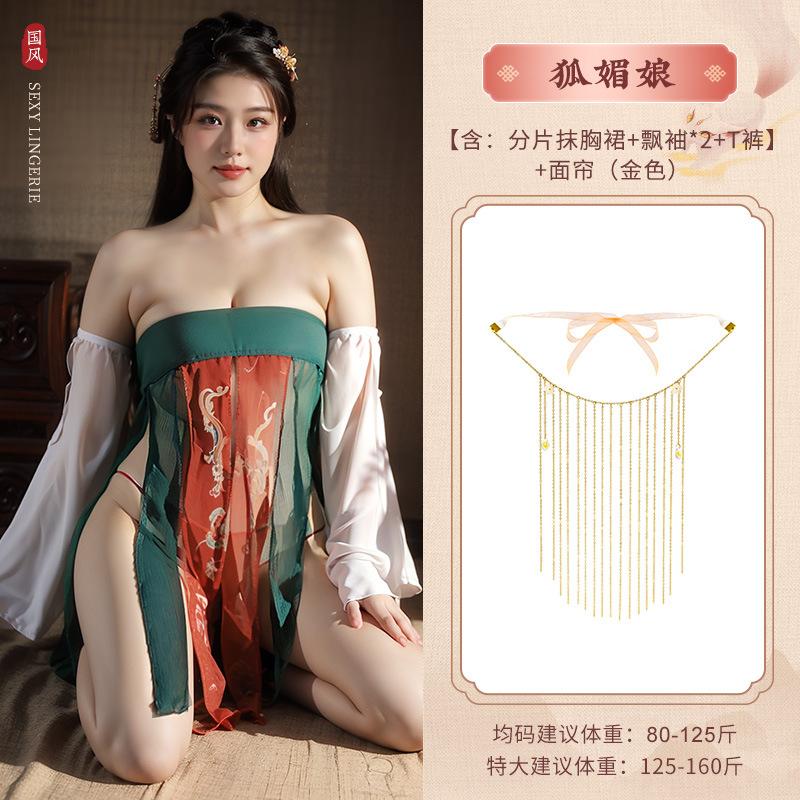 Plus Size Sexy Lingerie Chinese Ancient Kimono Suit Sheer Classical Dancing Girl Costume Erotic Hanfu Cosplay Princess Uniform