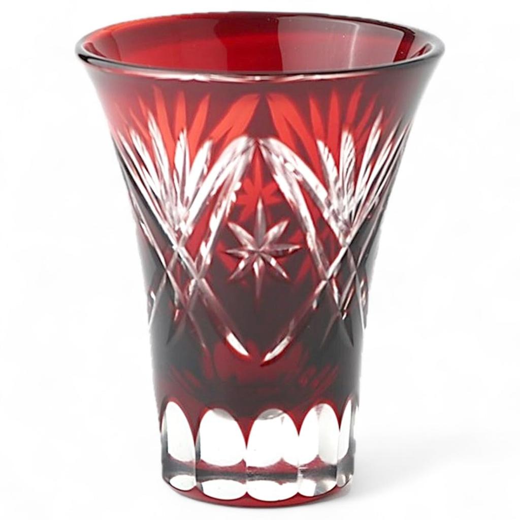 Mizukage Kiriko Glass Cup for Cold Diameter X Star Fan Current Model J-kitchens Sake, 6.2 7.8cm, 60cc, Design, Red, Bisho,