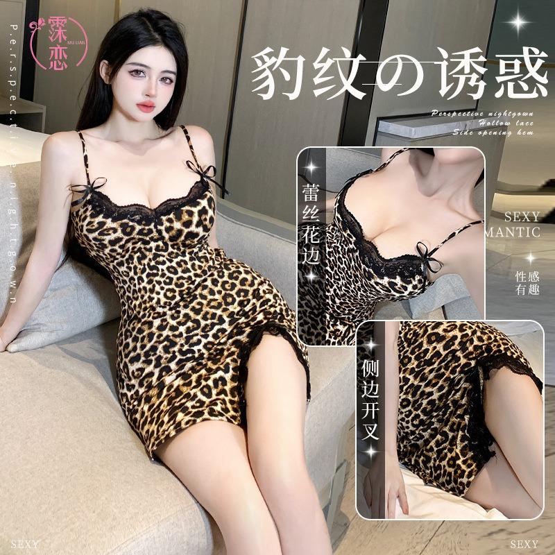 Leopard Print Lingerie Sexy Slit Suspender Sex Sex Bed Hot Sex
