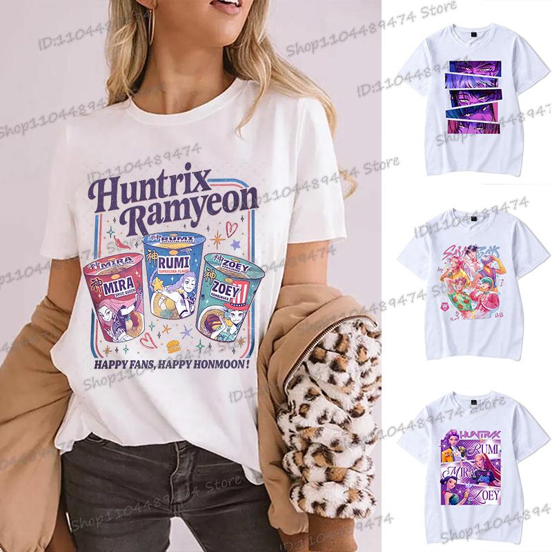 Summer New KPop Demon Hunters T-shirts Vintage Korean Ulzzang Anime Rumi Tiger Saja Boys Tshirts Hip Hop Streetwear Teenage