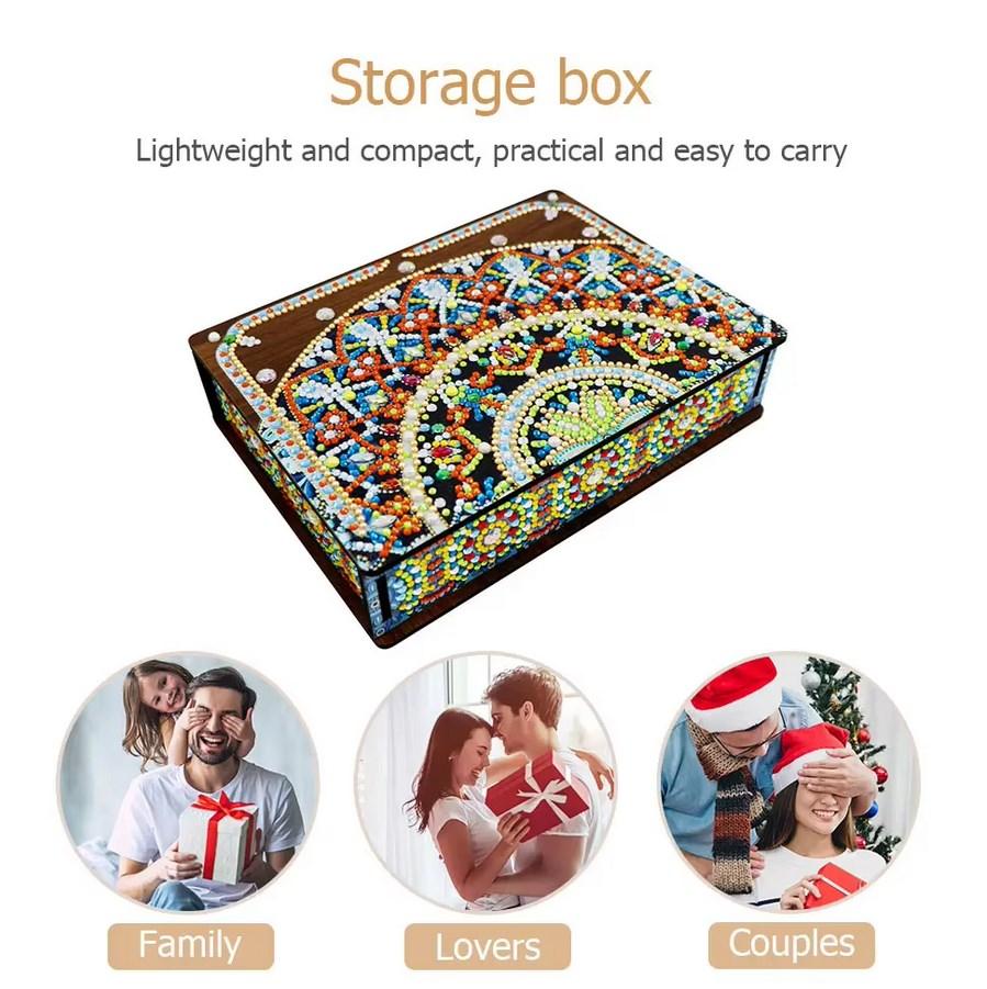Classic Mandala Diamond Painting Jewelry Storage Case DIY Special Shaped Drill Wood Organizer Mosaic Art Kit Handmade Xmas Gifts