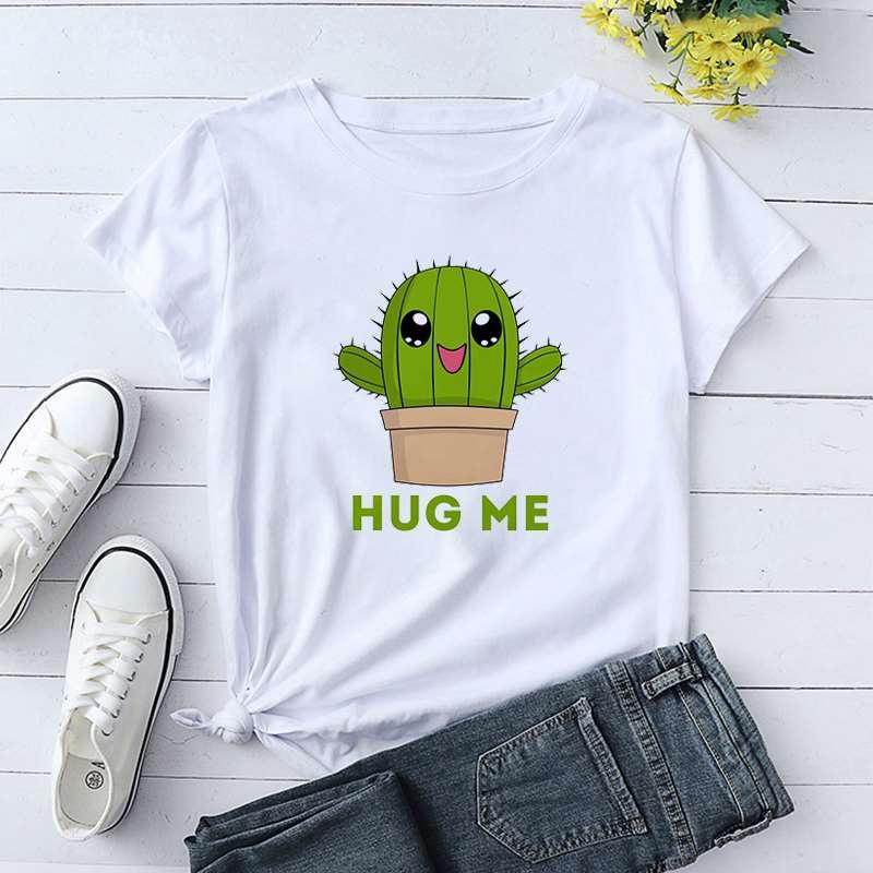 Funny Cactus Hug Me Print T-shirts For Women Summer Round Neck Unisex Tee Shirt Femme Fashion Casual T-shirts