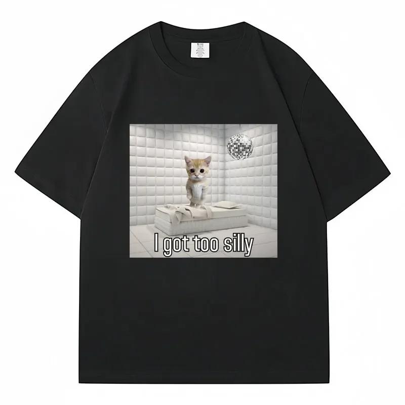 I Got Too Silly Funny Sad Crying Cat Meme T Shirt Men Women Trendy Short Sleeve T-shirt Summer Sport Casual Oversized Streetwear