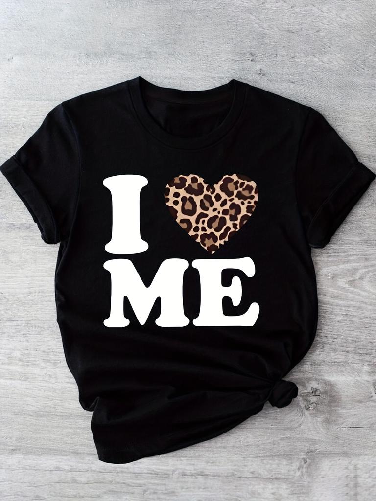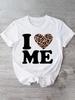 Women'S I Me Leopard Heart Print T-Shirt Casual Comfortable Crew Neck Short Sleeve Tee Perfect for Casual Attire Trendy Casual