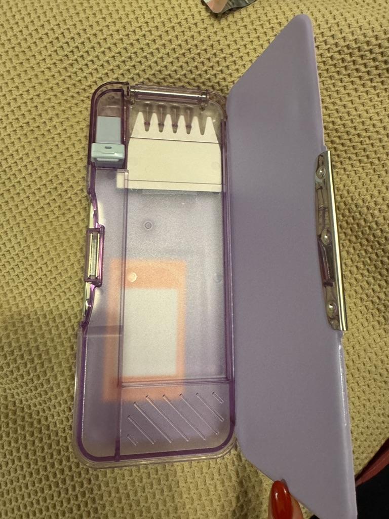A double-sided pencil check case to help with the problem of accidentally forgetting to sharpen your pencil.