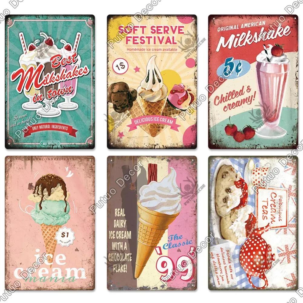Summer Dessert Sign Vintage Tin Poster Metal Sign Metal Plate Retro Style Wall Decor Kitchen Cafe Home Decoration