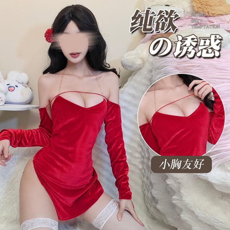 Sex Underwear Velvet Red New Suspender Skirt Chain Halter Side Split Hip Skirt Pure Desire High Sense