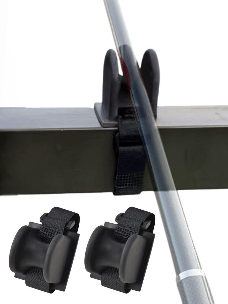 Set of 3 Fishing Rod Holders, Rod Rests, Rod Stands, Hook-and-Loop Fasteners, for Embankments, Parapets, Handrails, and Fences (Flat - Black)