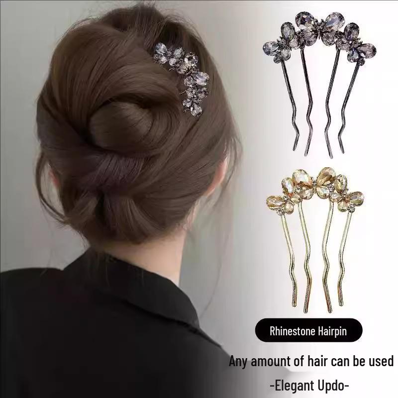 Rhinestone Pearl U-Shaped Hairpin Comb for Updo Fixing