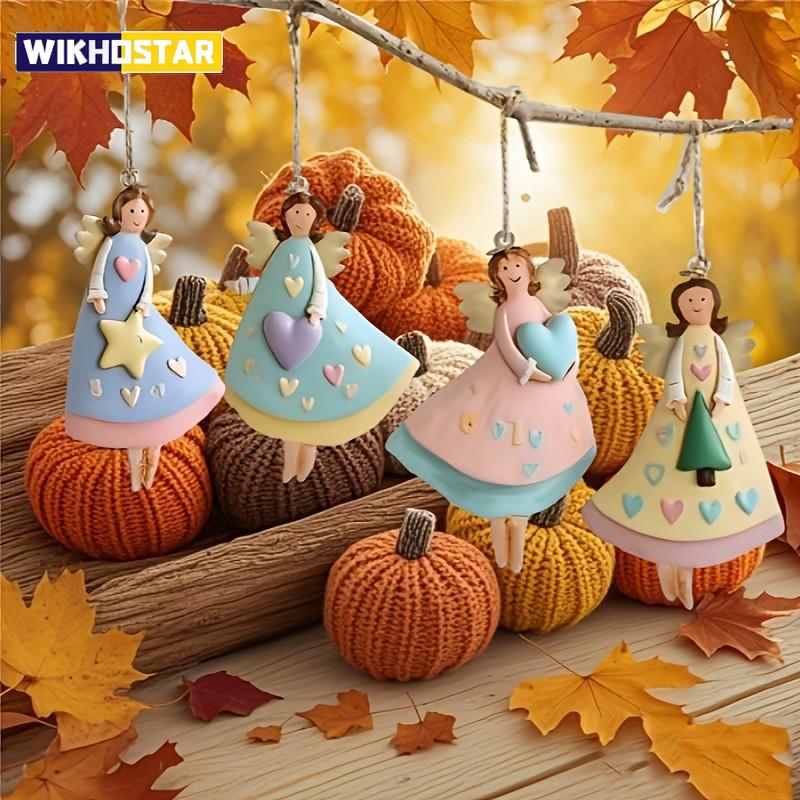 4PCS/Set Vintage Angel Hanging Decor Fantasy Wooden Xmas Tree Hanging Ornament 2025 Navidad Decor for Home 2026 New Year Gift
