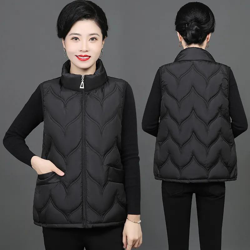 Women Autumn Winter Stand Collar Warm Jacket Vest Plus Size Thermal Top for Middle-Aged and Elderly