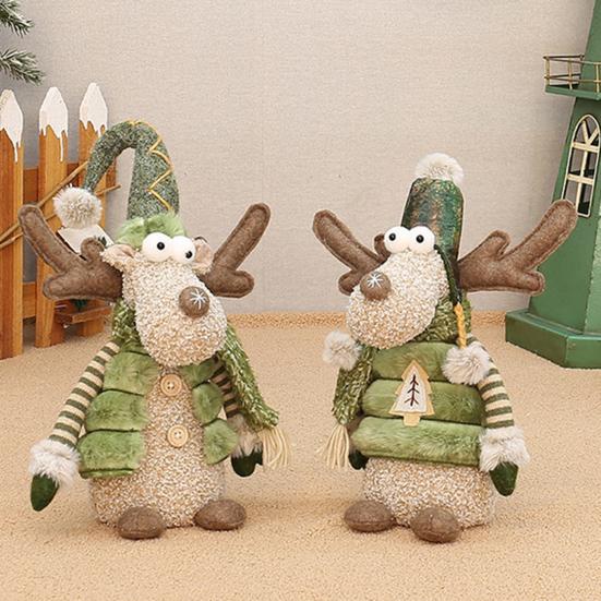 Christmas Reindeer Plush Toy with Retractable Legs Handmade Long-Legged Cartoon Elk Plush Doll Xmas Holiday Party Decoration Ornament