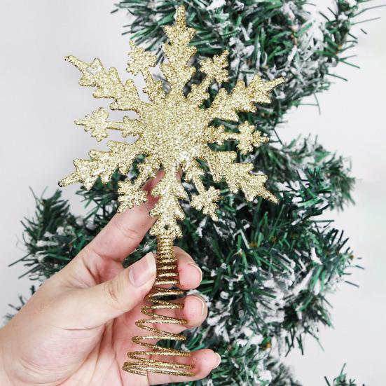 Snowflake Tree Topper Gold Red Glittered Iron Star for Christmas Tree Easy Installation Festive Decoration for Holiday Parties